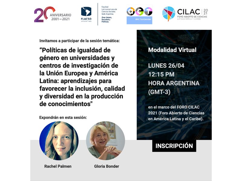 Invitamos a participar de la sesión temática: “Políticas de igualdad de género en universidades y centros de investigación de la Unión Europea y América Latina: aprendizajes para favorecer la inclusión, calidad y diversidad en la producción de conocimientos” […]